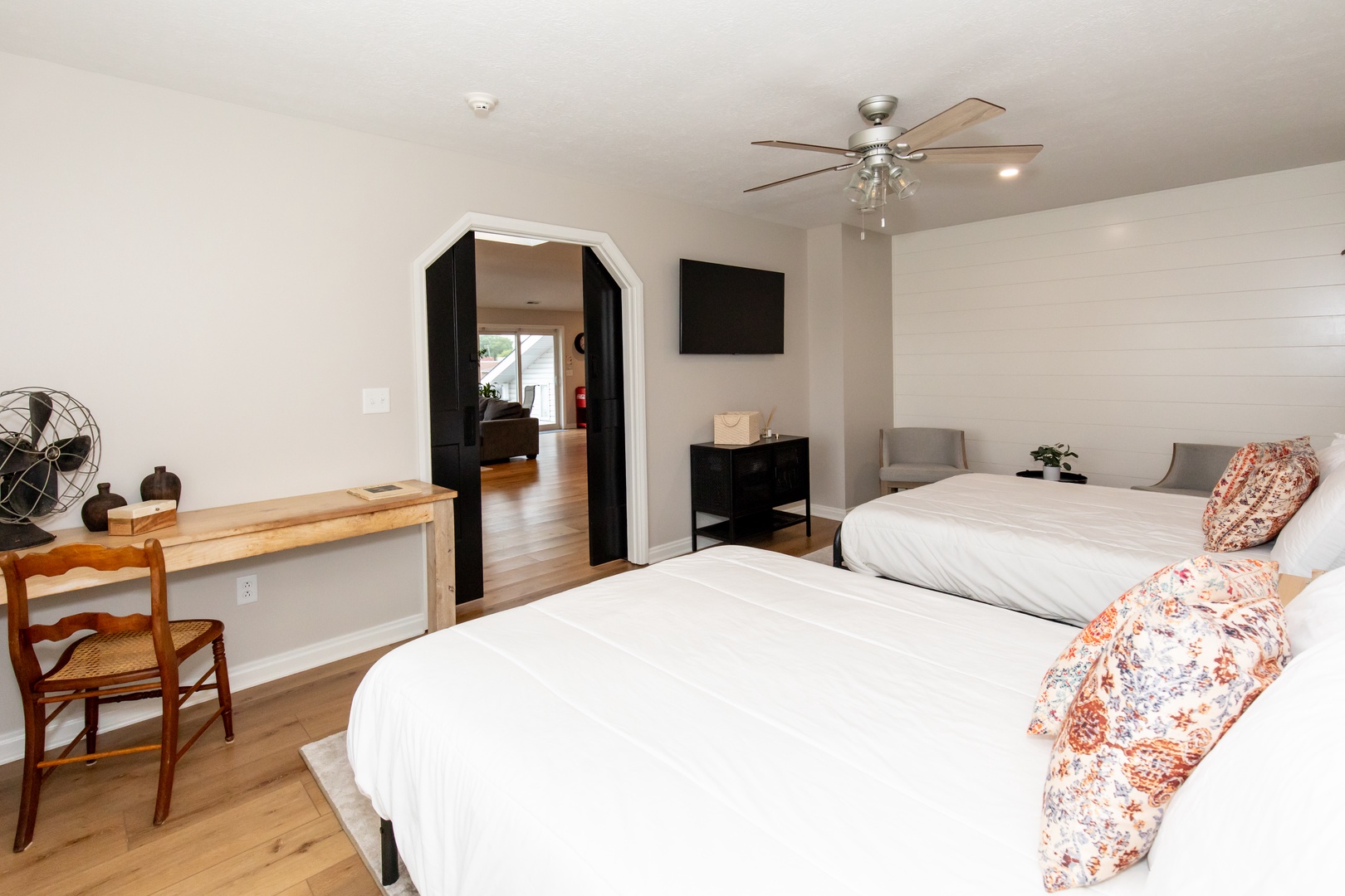 One of a kind large, luxury home with charming, reclaimed pieces throughout, and your groups convenience contemplated in every detail. The Attic boasts 6 well-appointed bedrooms, 3 luxury bathrooms, a brand new outdoor hot tub below our multi-tier deck space, large open floor chef's kitchen, dining and living space for the whole group to relax, multiple refrigerators, dishwashers, washers and dryers to keep the chores at bay! The Attic is the equivalent to 7 deluxe hotel rooms!
