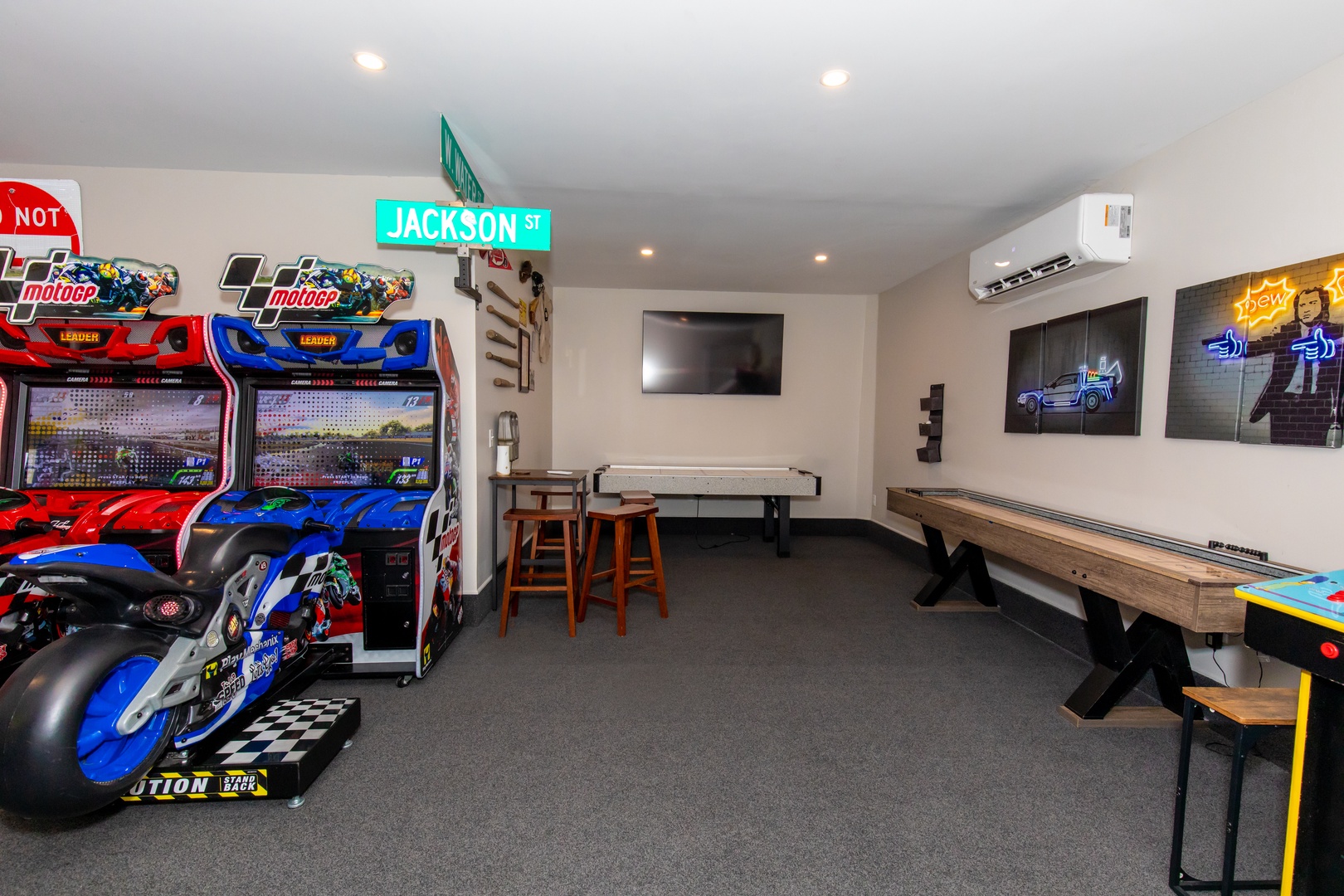 by BethanyWe had our annual family Christmas here and there was plenty of room. There were more than enough beds & seating, plenty of space in the cupboards and fridges for all of our food. The kids had a blast in the arcade area! That was a highlight for sure! The place was clean & welcoming. Nick was great at getting back to us right away when we had any questions. We’re planning on staying here again with the whole family. It’s probably the best place we’ve stayed at for our annual get togethers. And it was not far from Kalahari!