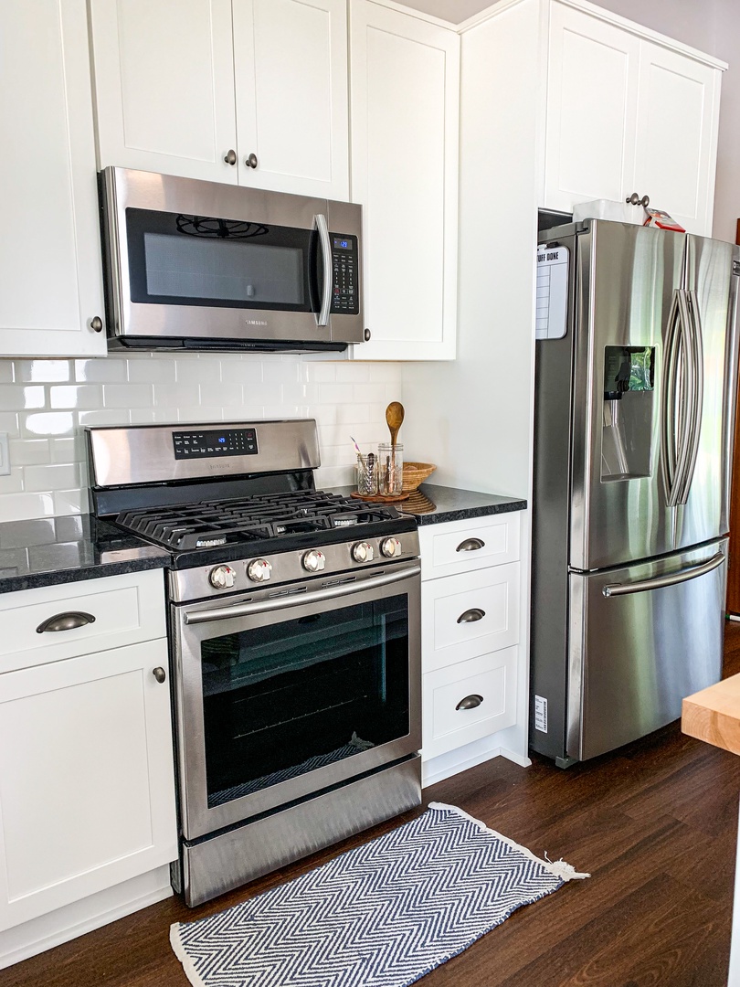 Fully stocked updated kitchen that resides in an open floor plan connecting to the dining and living space.